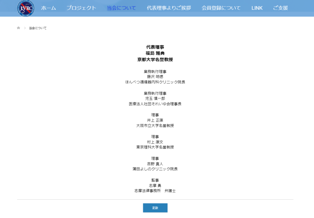 京都大学名誉教授の福島雅典先生、大阪市立大学名誉教授の井上正康先生、児玉慎一郎医師、東京理科大学名誉教授の村上康文先生、北海道有志医師の会代表の藤沢明徳医師、吉野真人医師が在籍しています。