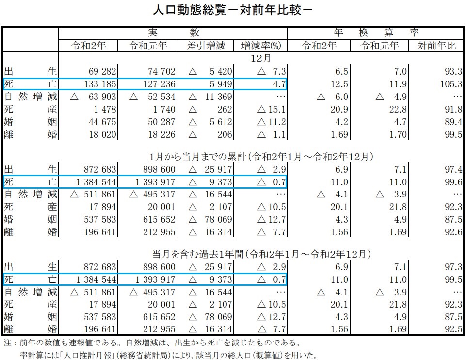 ・超過死亡原因をコロナによる医療機関の受診控え、自粛の影響で高齢者が体調を崩したことだとするには無理な気がします。