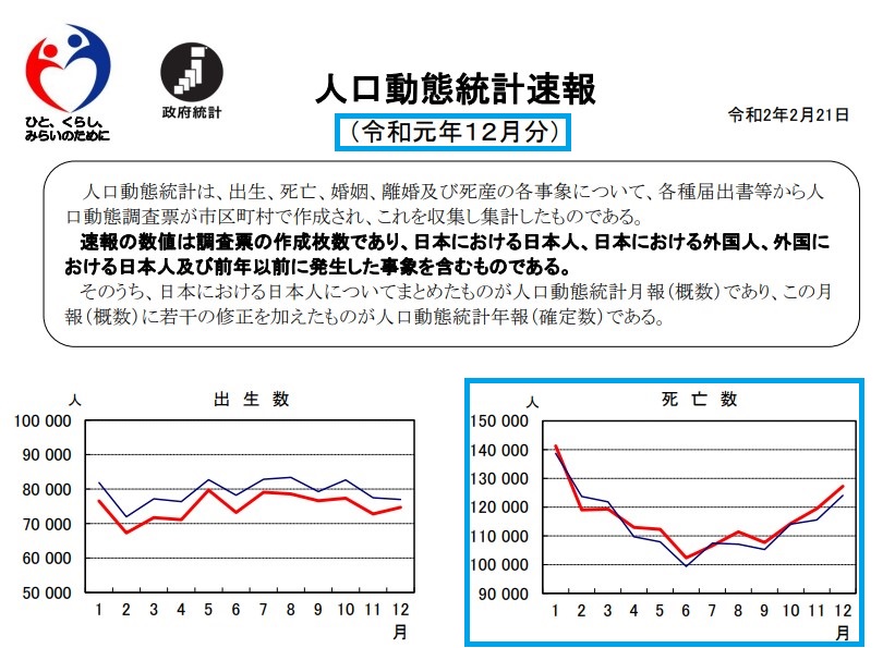 ・例年、冬場は死者数が増大するものですが、グラフは異常な急上昇を示してます。