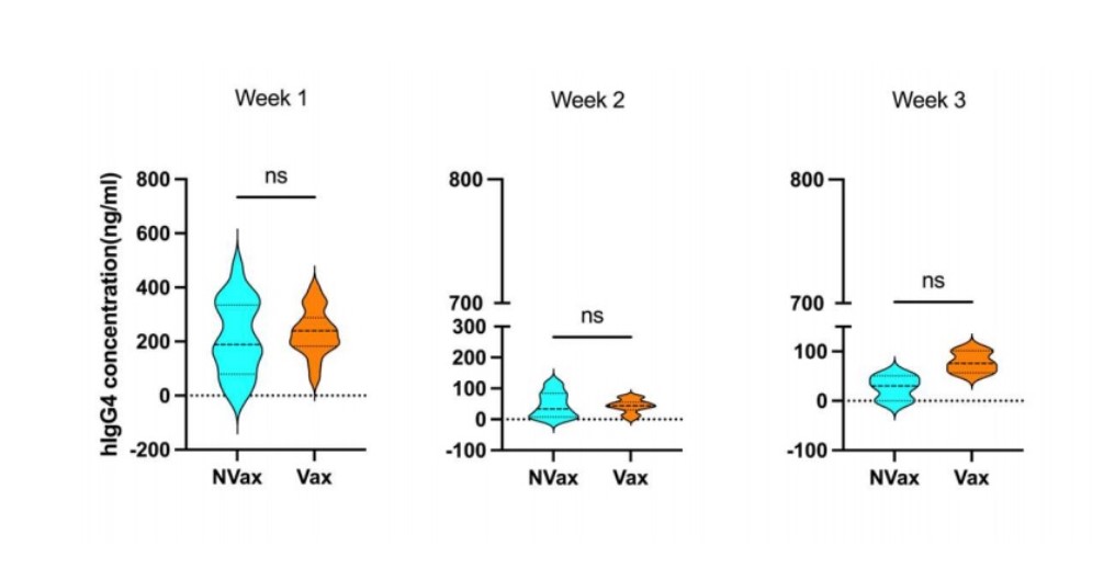 新型コロナウイルス感染患者の💉❝新型コロナ『遺伝子/mRNA』ワクチン❞💉接種患者と非/未接種患者のIgG4(免疫抑制抗体)の比較(第1週~第3週)