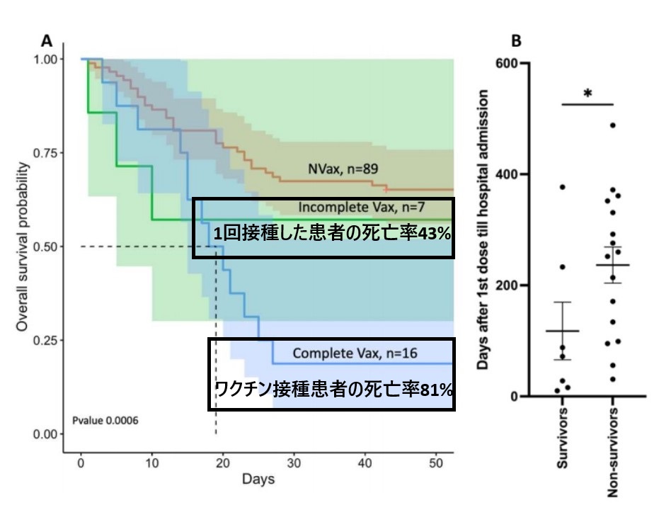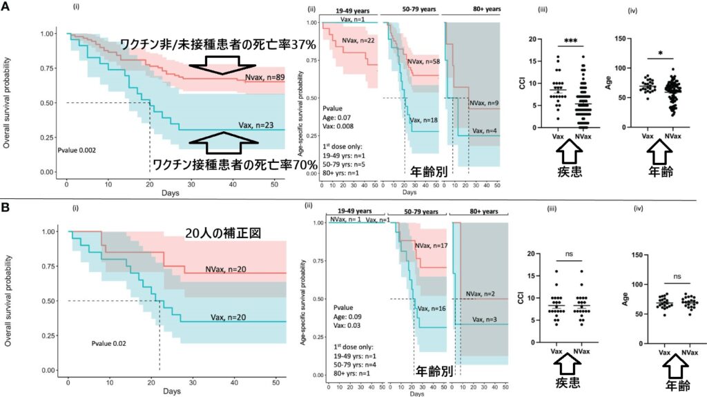 新型コロナウイルス感染患者の、💉❝新型コロナ『遺伝子/mRNA』ワクチン❞💉接種患者と非/未接種患者の死亡率は接種者が有意に高いことから、非/未接種患者の生存率が高いことが分かった💡