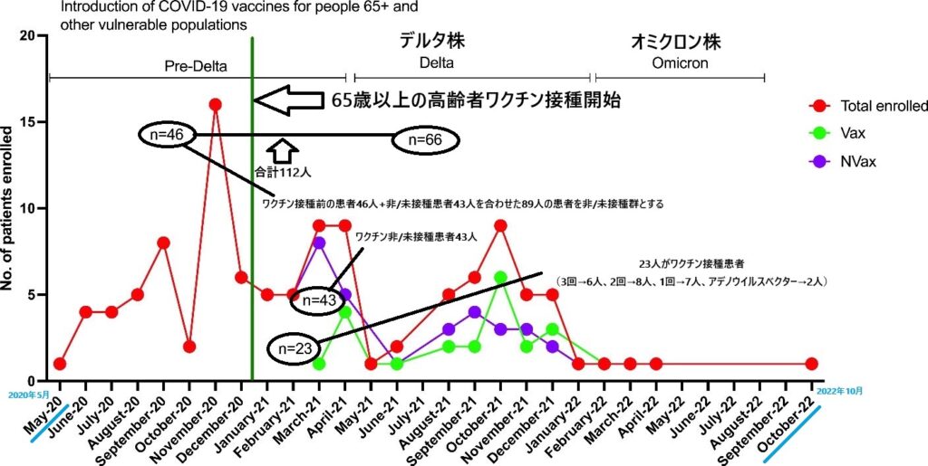 Vax(ワクチン接種患者)、NVax(ワクチン非/未接種患者)